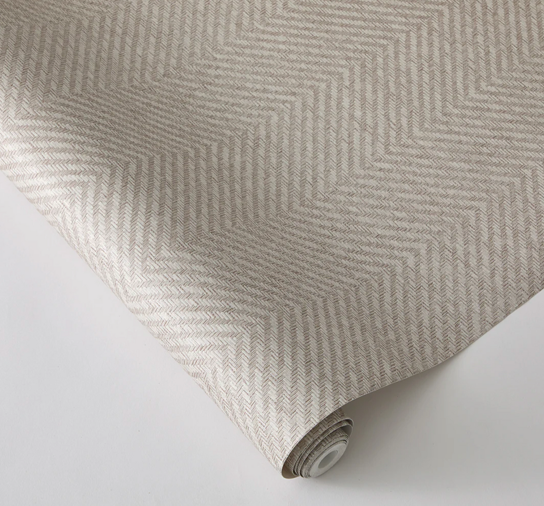 Add a touch of understated luxury to your space with our faux Grasscloth Parquet textured removable wallpaper, in a greige colorway. Inspired by traditional grasscloth and reimagined with a classic herringbone twist, this design—part of our collection with interior designer Jeremiah Brent—offers a soft neutral backdrop that will bring depth and texture to any room. Ideal for open-concept spaces or repeating throughout multiple rooms in your home, this wallpaper will create an enveloping, enduring look that enhances without overwhelming.