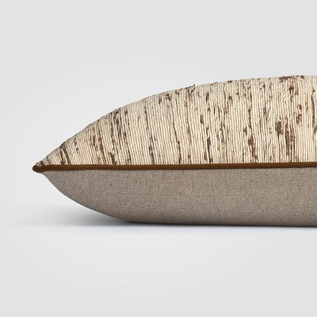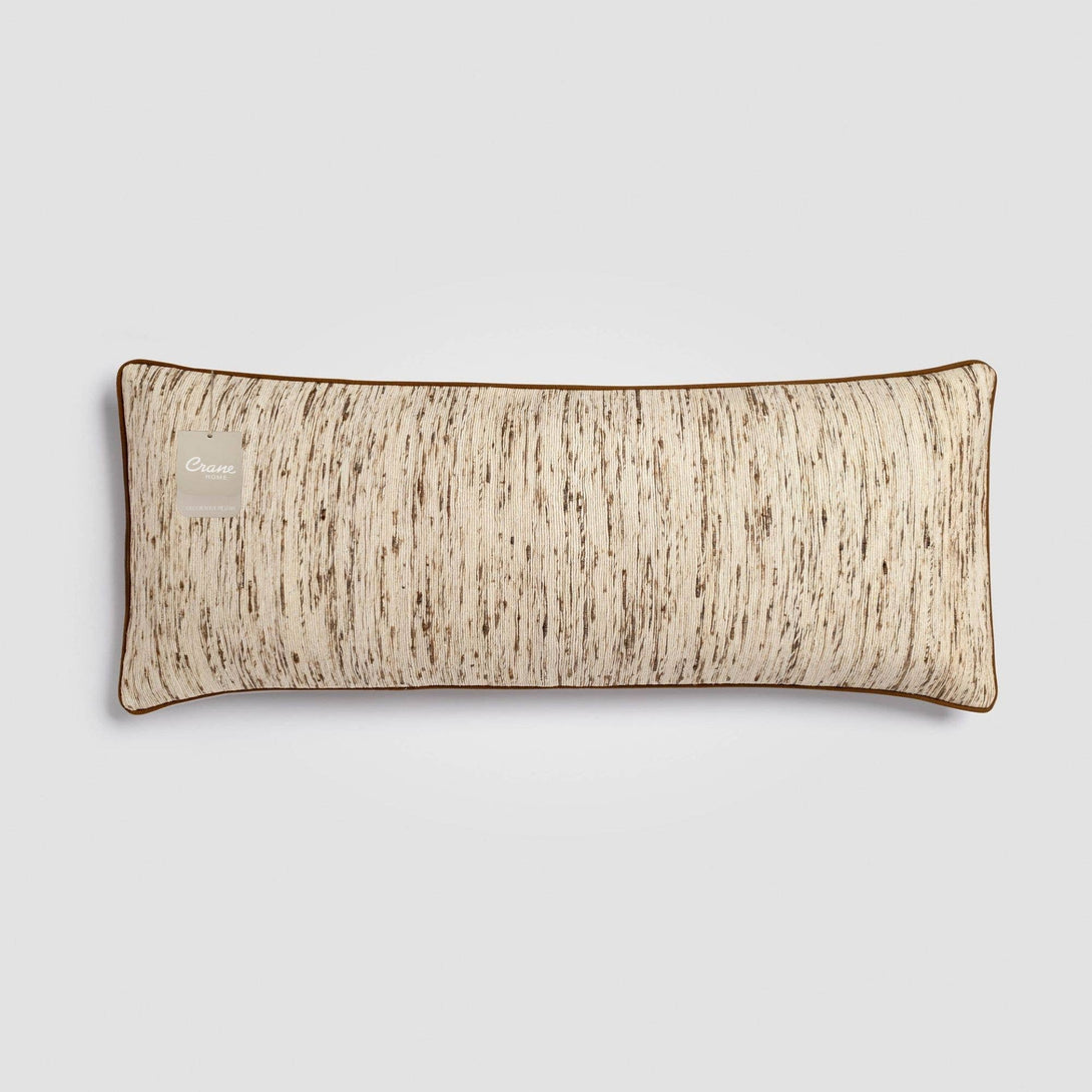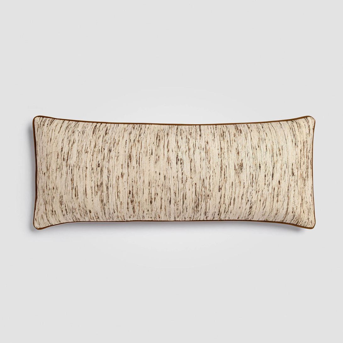 Crafted from a luxurious handwoven silk and yarn blend, this lumbar pillow brings a refined softness to your bedroom. The mix of brown and ivory tones, paired with a darker piped edge, adds contrast and elegance to your bedding arrangement. Layer it with other Calm Collection pillows and throws for a harmonious, textural finish.