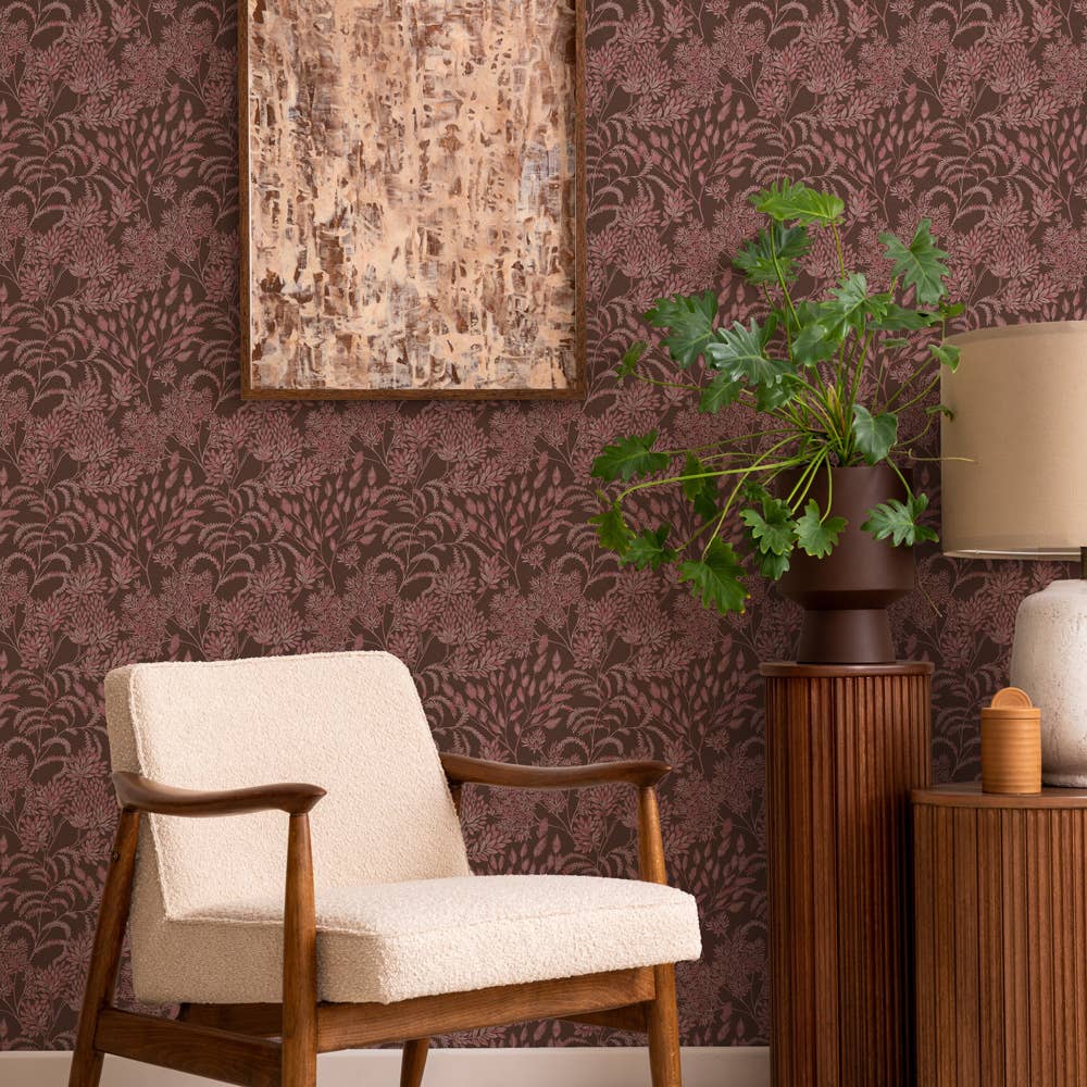 Stencil Foliage Unpasted Wallpaper in Mulberry